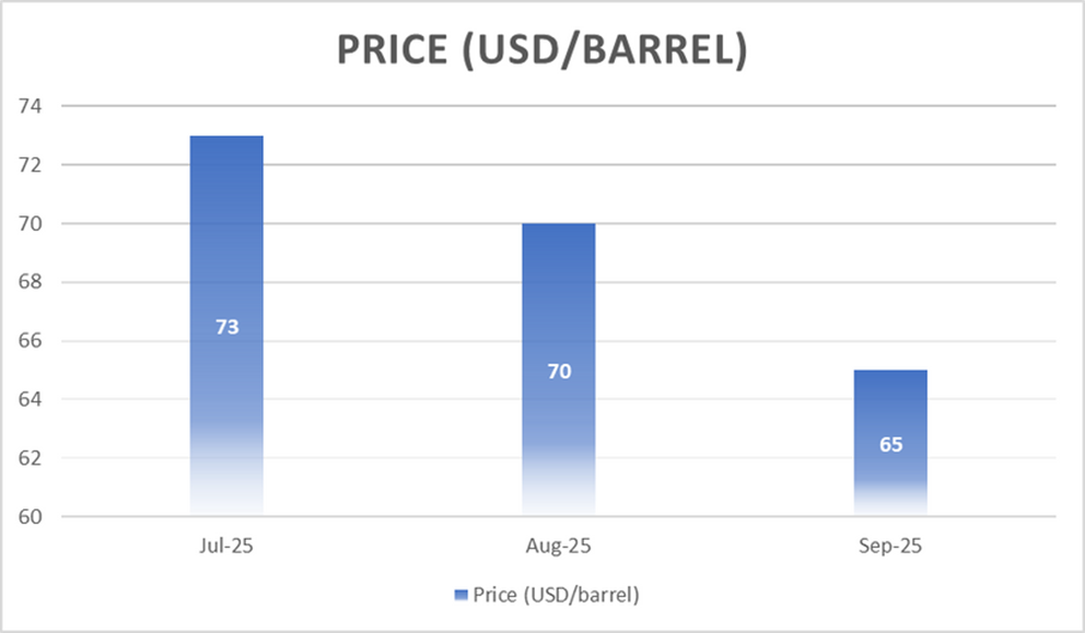 The Brent Crude, which is in the middle of all trade talks between India and western nations, saw a surge in late July crossing over USD 72-73 per bbl, only to succumb to below USD 65 per bbl levels by the end of September.