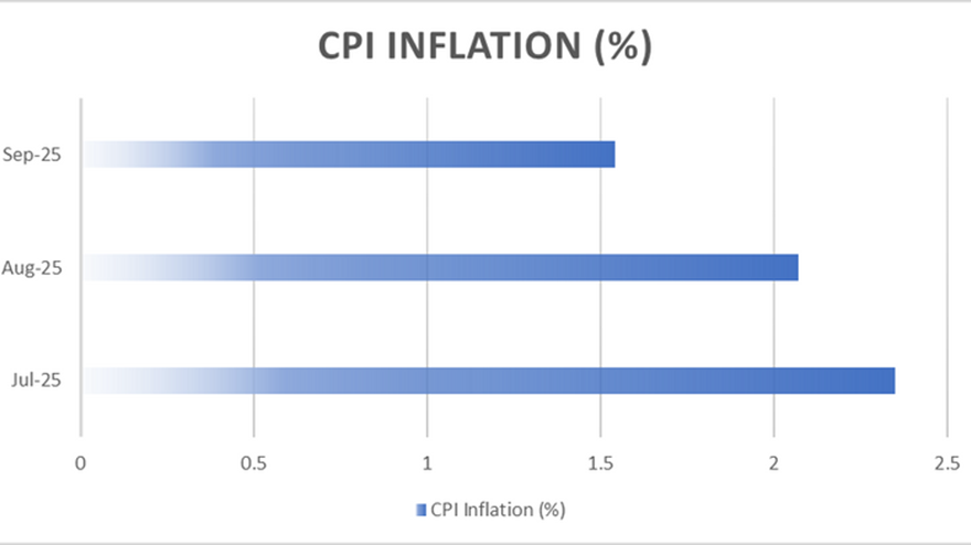 The RBI has been relieved of CPI inflation pressure this year as CPI inflation has cooled down to 1.54% from 2.07% in August 2025, allowing flexibility for the Central Bank on monetary policy decision making.
